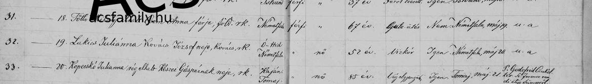 Lakits Rosalia Születés: 1817. november 19. 29 29 — Káptalantóti, Zala Elhalálozás: |