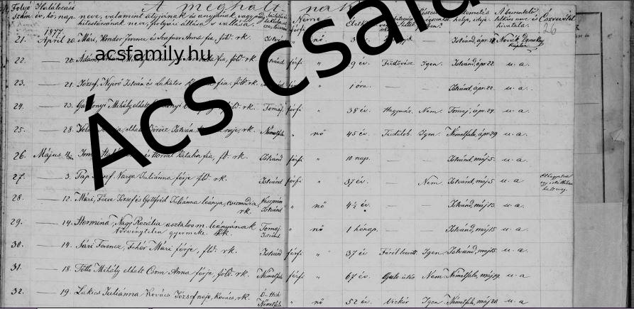 | Anyai nagyanya halála | Horváth Anna 1843. július 30. (Életkor 23 év) Életkor: 83 év |