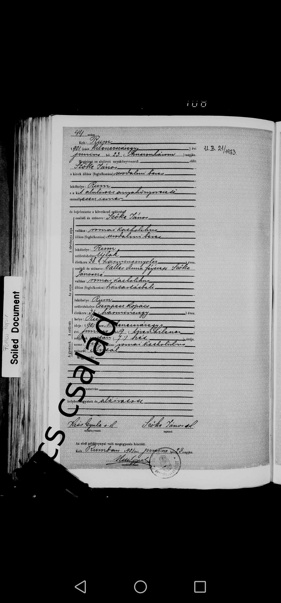 | Anya halála | Horváth Rozália 1944. július 20. Életkor: 34 Ok: Tüdőgümőkor |
