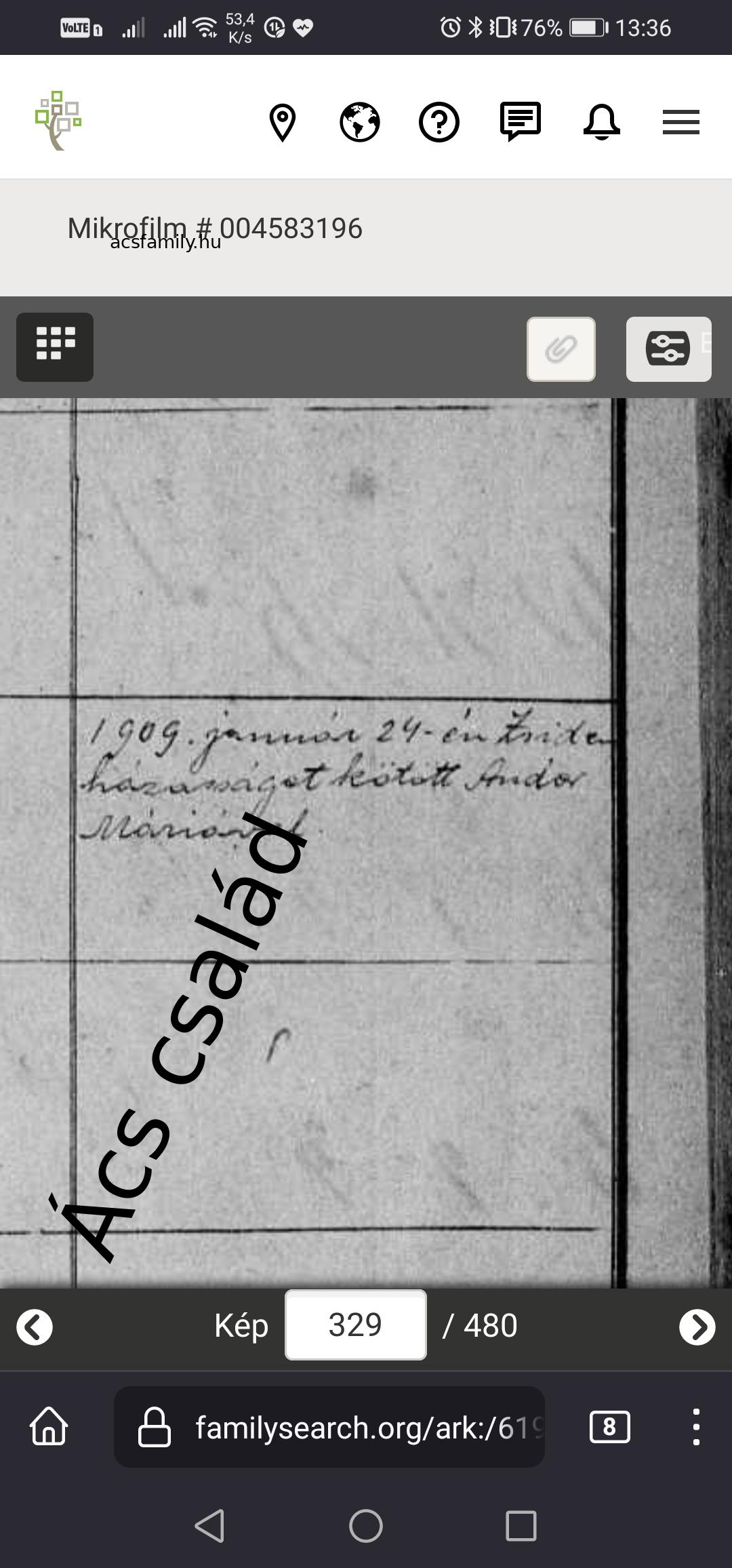 Házasság: 1909. január 24. — Alsózsid, Zala |