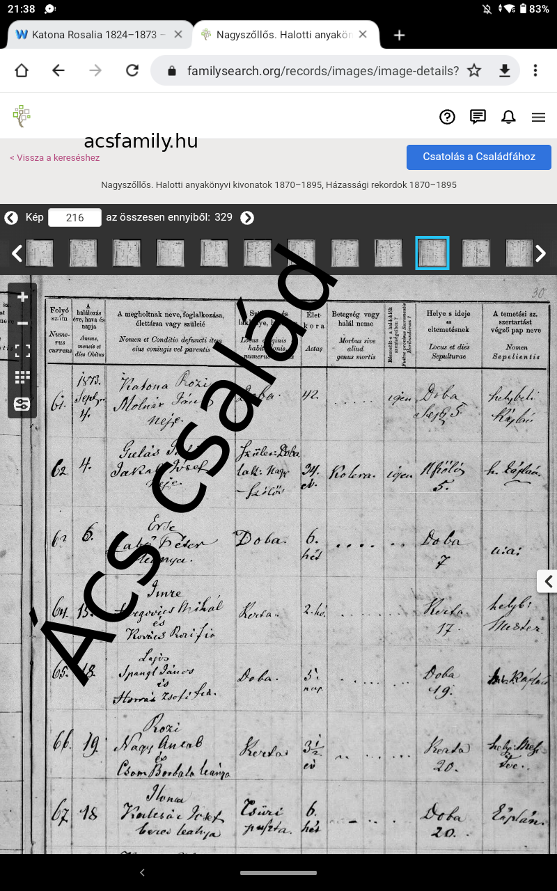 | férj | Molnár Joannes Születés: 1815. július 19. 26 25 — Nagyszőllős, Veszprém Elhalálozás:  |