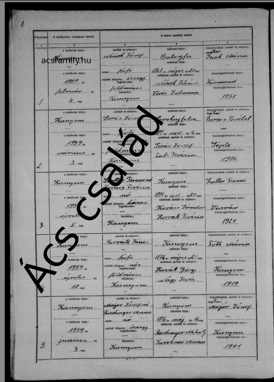 | Lánytestvér halála | Németh Anna 1872 (Életkor 12 hónap) |