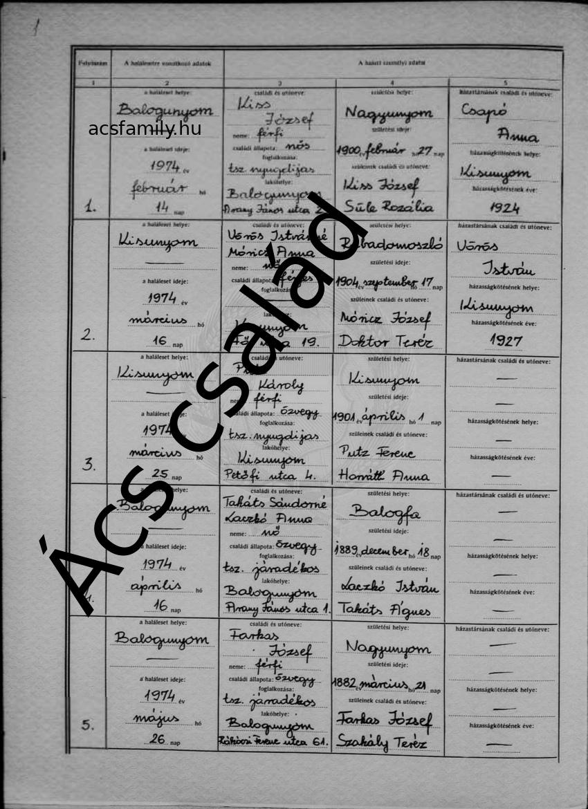 | Fiútestvér halála | Putz Károly 1974 (Életkor 90 év) Elérhetőségi cím: Özvegy Ok: Heveny májzsugorodás |
