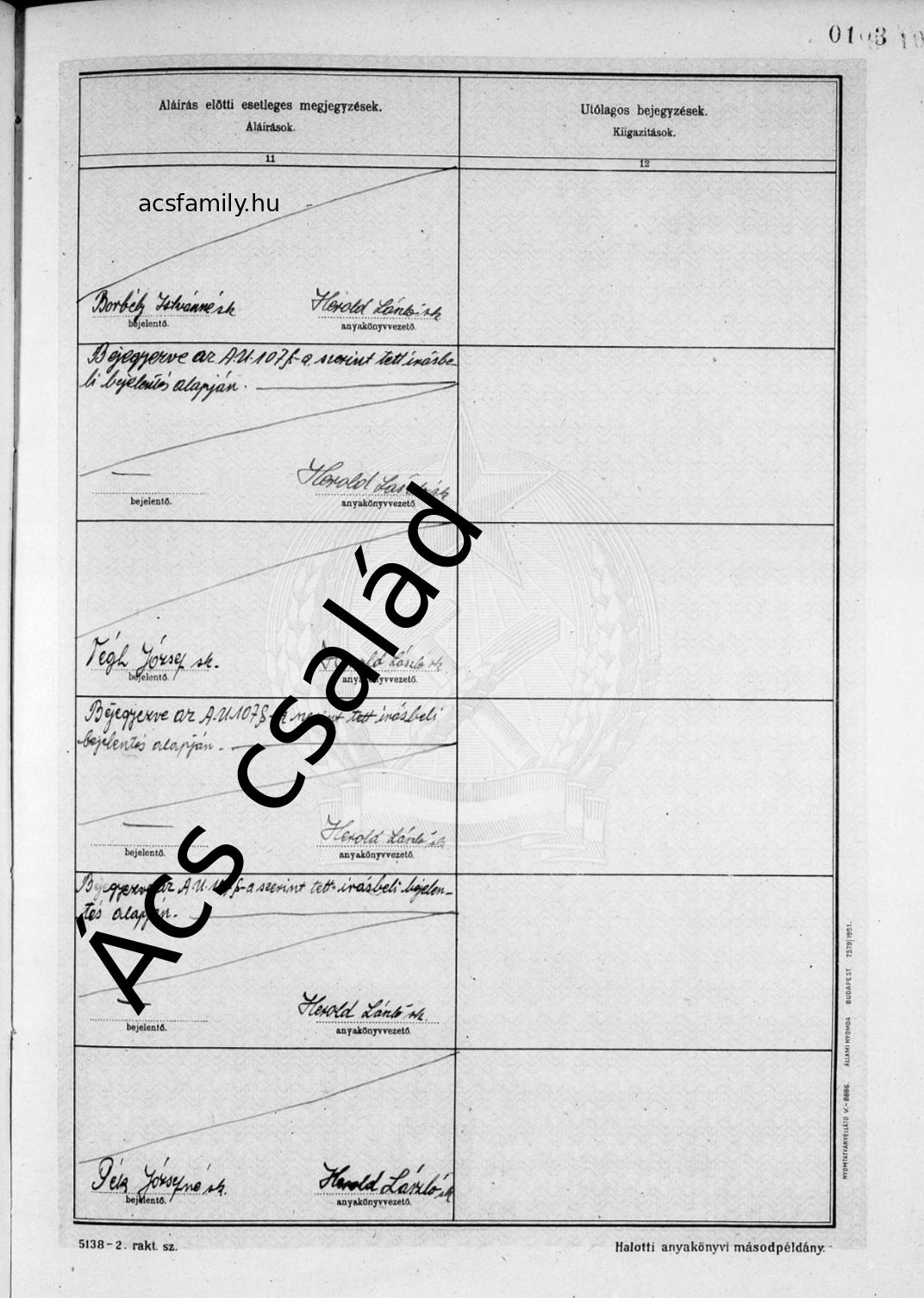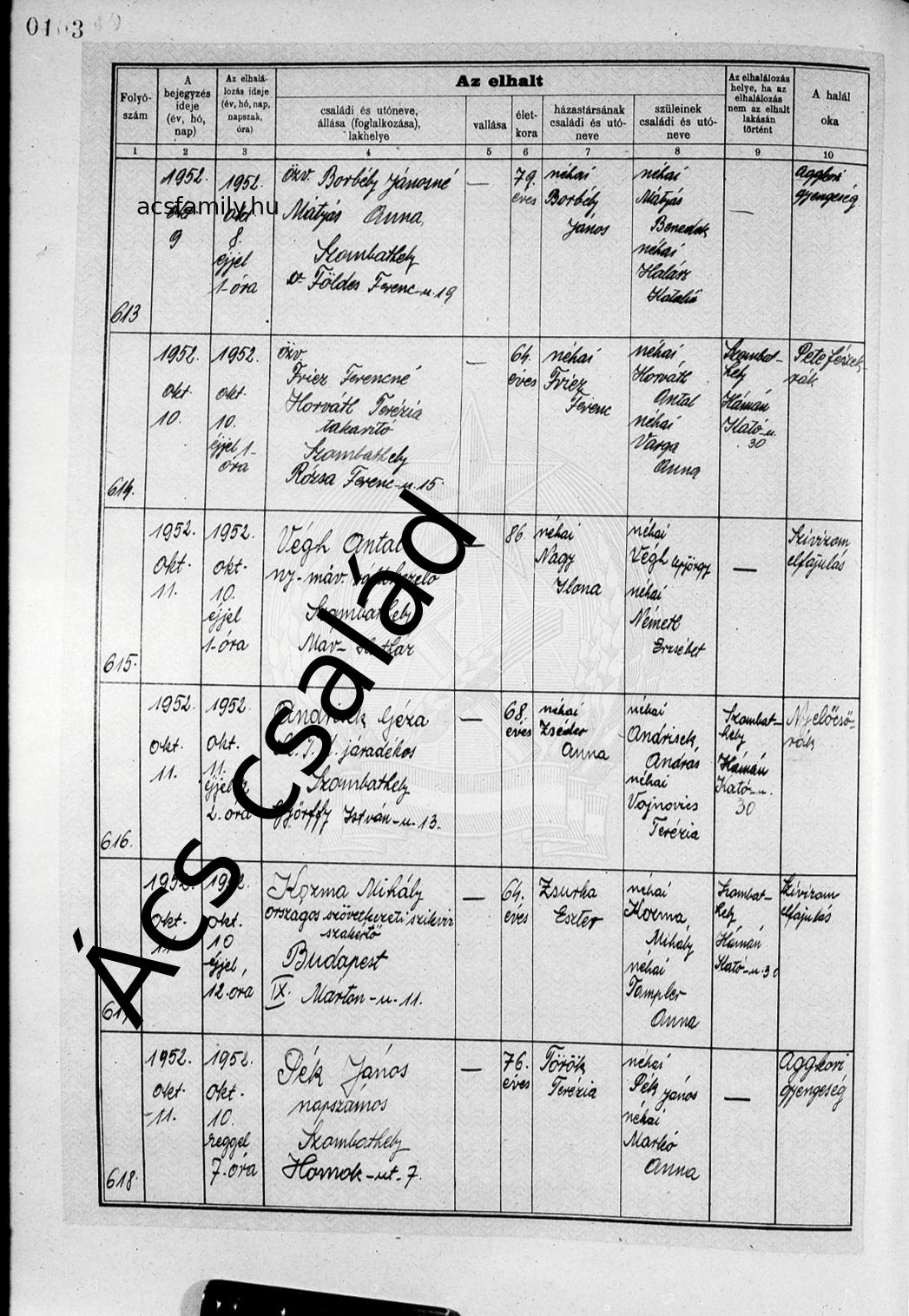 | Lánytestvér halála | Pék Mária 1949. június 24. (Életkor 73 év) Életkor: 62 Ok: Agyvérzés |
