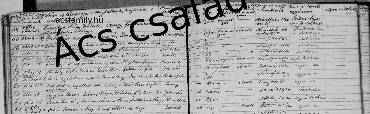 Születés: 1862. november 09. 35 36 — Lesencetomaj, Veszprém Elhalálozás: 1862. november 28. — Lesencetomaj |