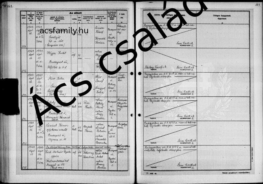 Születés: 1913. augusztus 30. 49 42 — Kisunyom Elhalálozás: 1946. április 04. — Budapest VIII. Alföldi utca 14. |