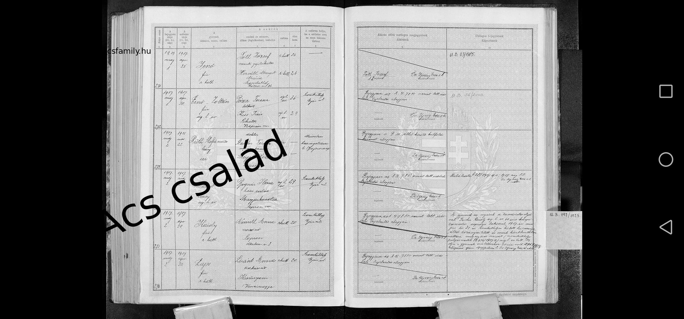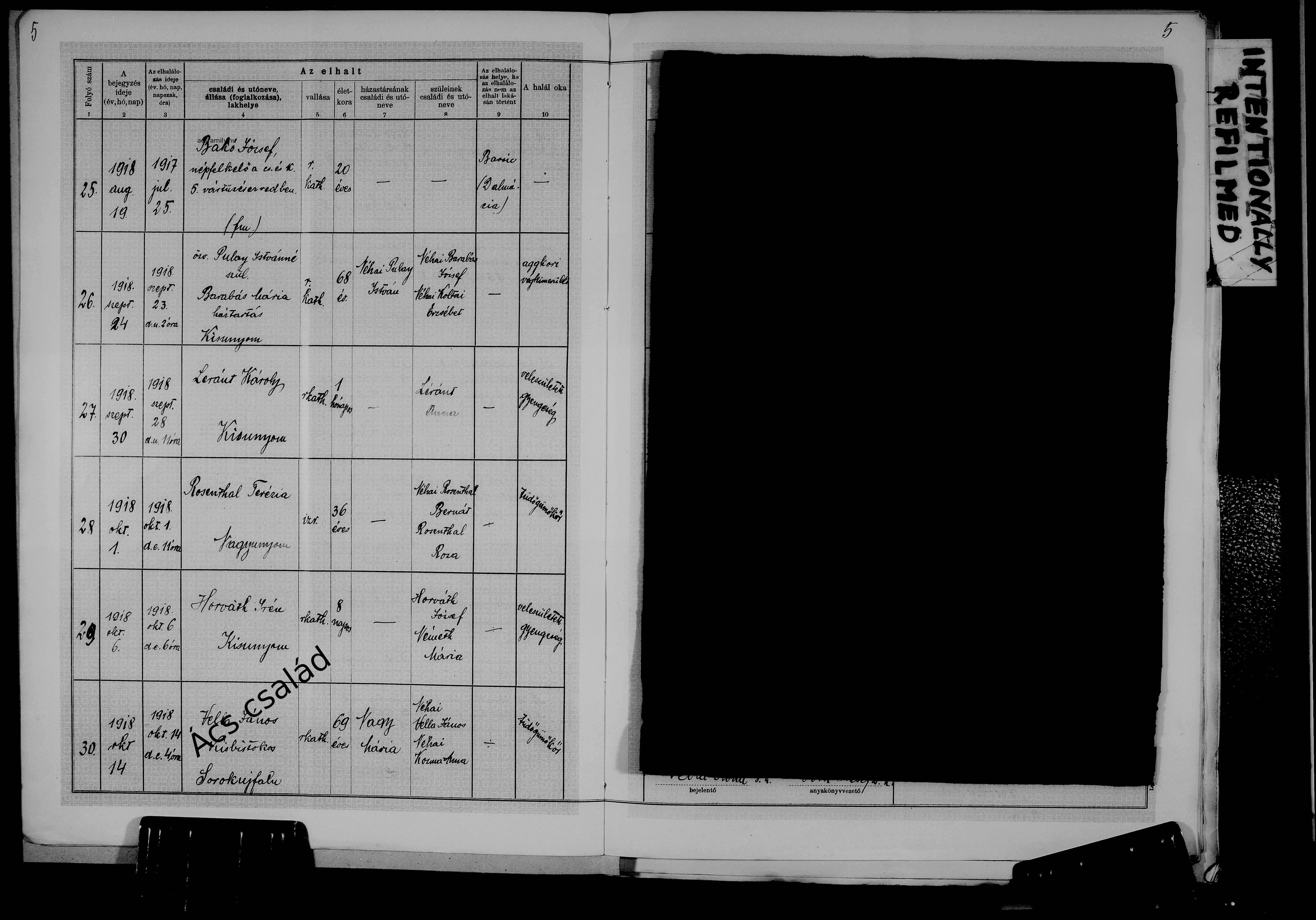 Születés: 1918. augusztus 28. 23 — Szombathely Gyár u. 2. Elhalálozás: 1918. szeptember 28. — Kisunyom |