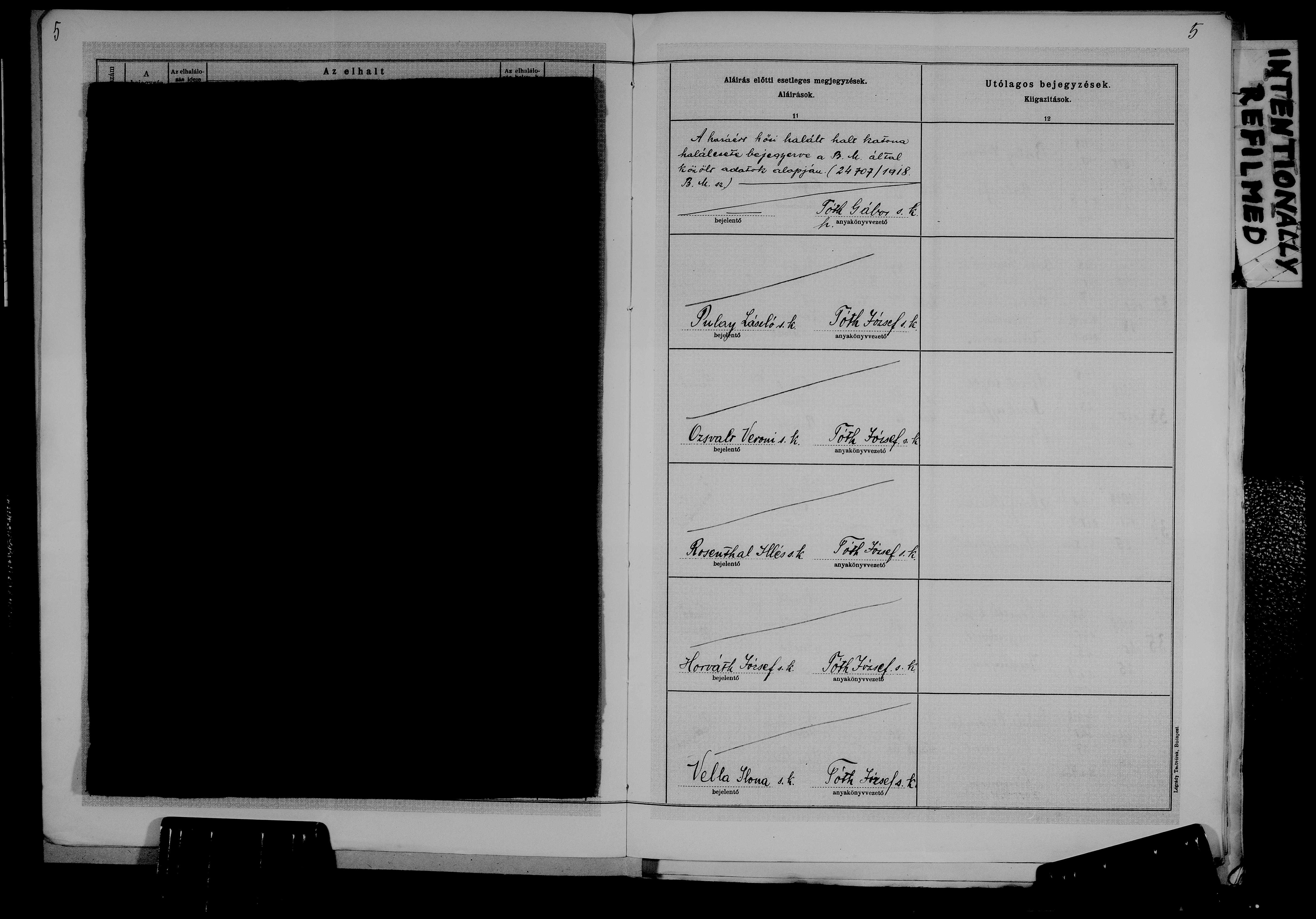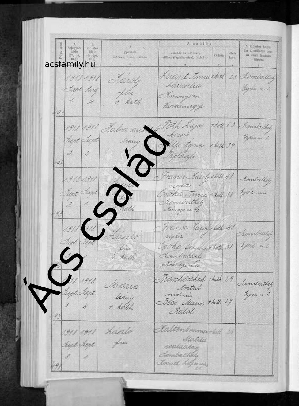 Születés: 1918. augusztus 28. 23 — Szombathely Gyár u. 2. Elhalálozás: 1918. szeptember 28. — Kisunyom |