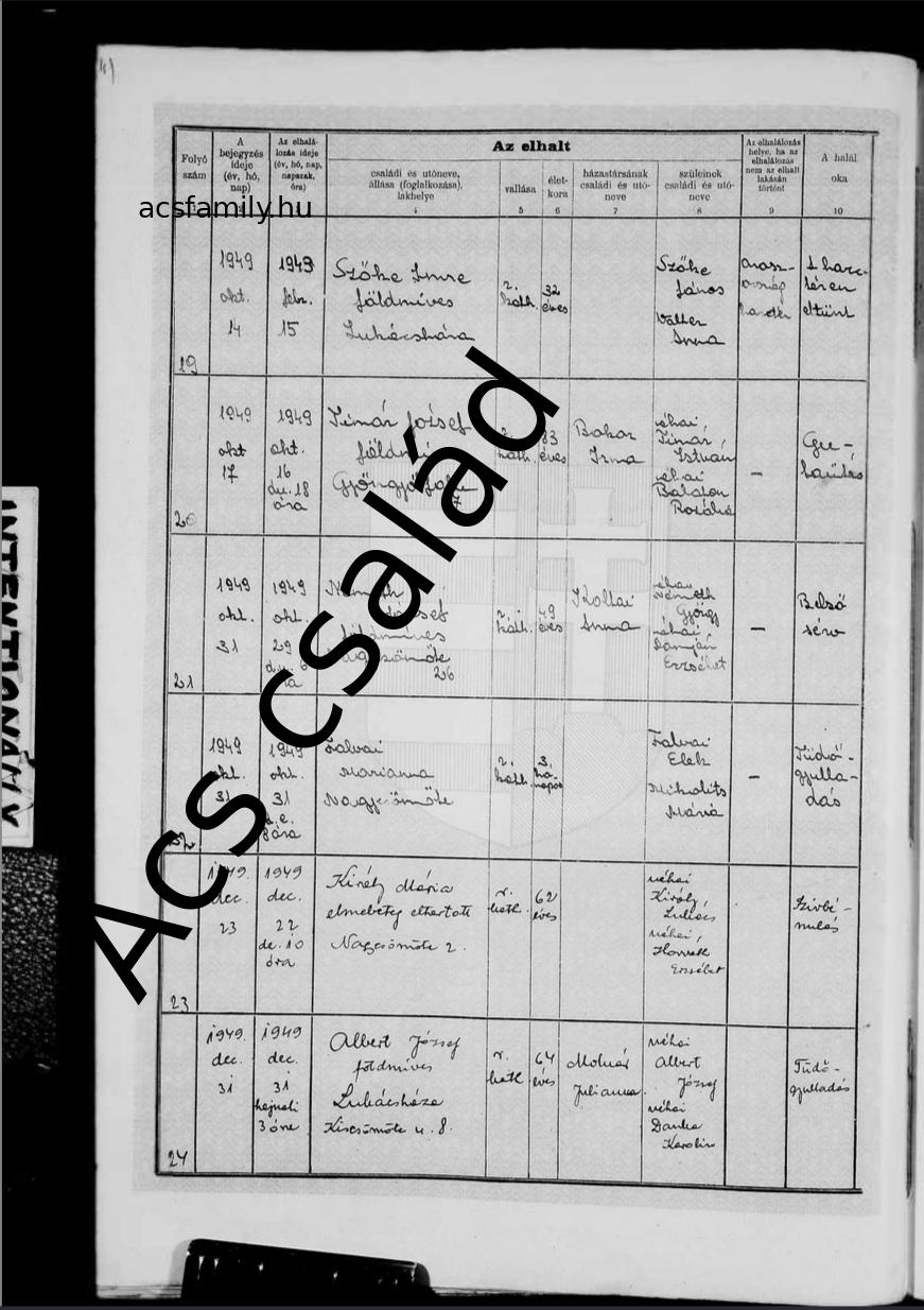 Születés: 1890. augusztus 01. 27 20 — Táplánfa 17 Elhalálozás: 1979. február 24. — Sorokpolány |