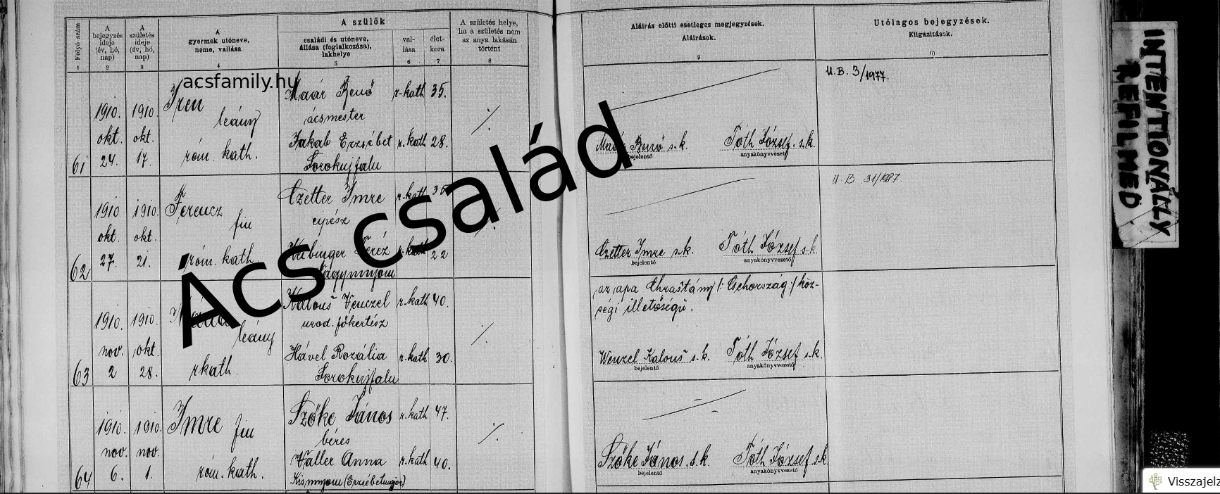 | Privát adat + Horváth Erzsébet (örökbefogadott) |