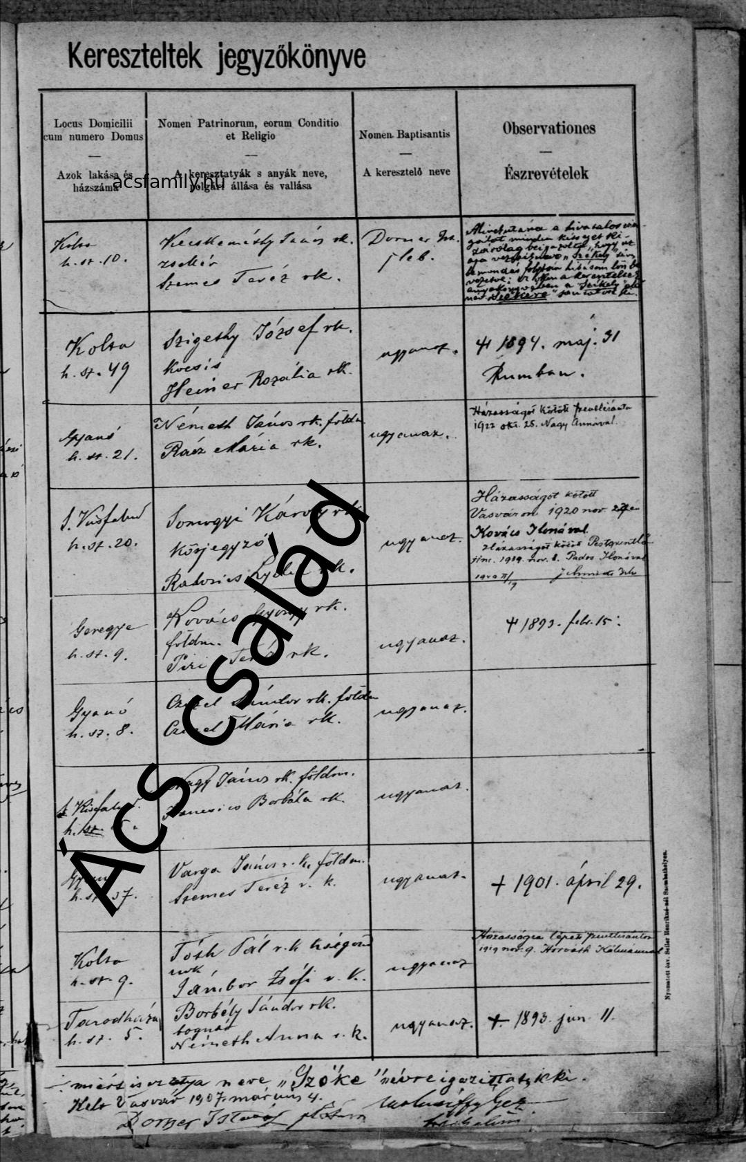 Születés: 1870. július 16. 27 — Csempeszkopács, Vas Elhalálozás: 1938. január 27. — Kisunyom |