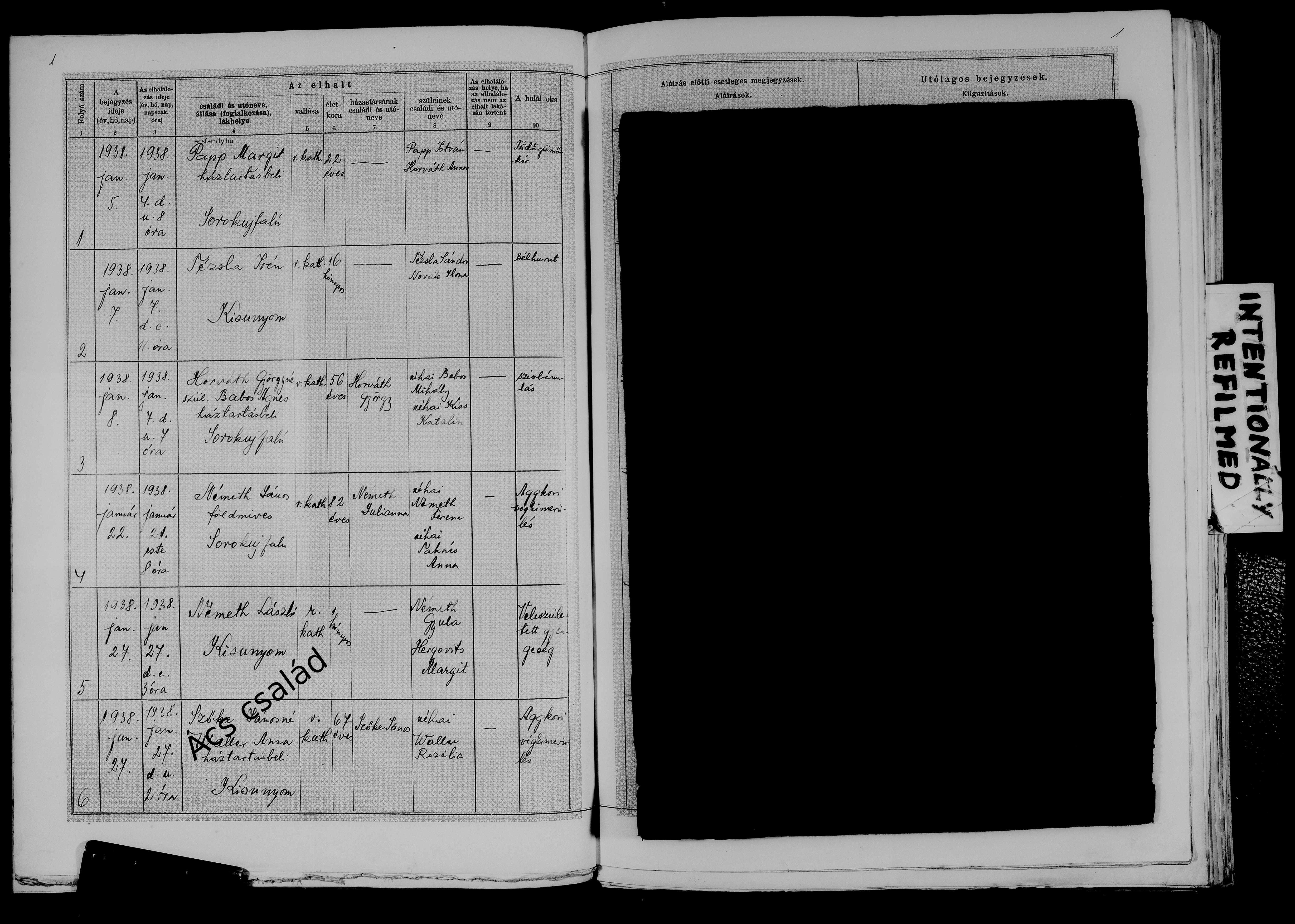 | Anya halála | Valler Rozália 1938 (Életkor 67 év) |