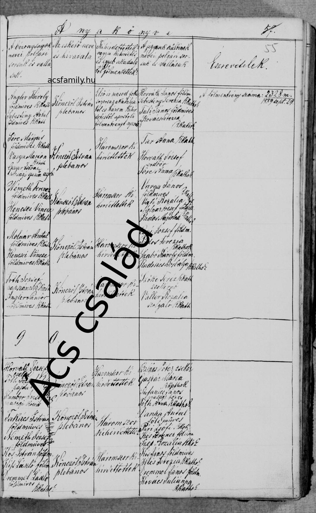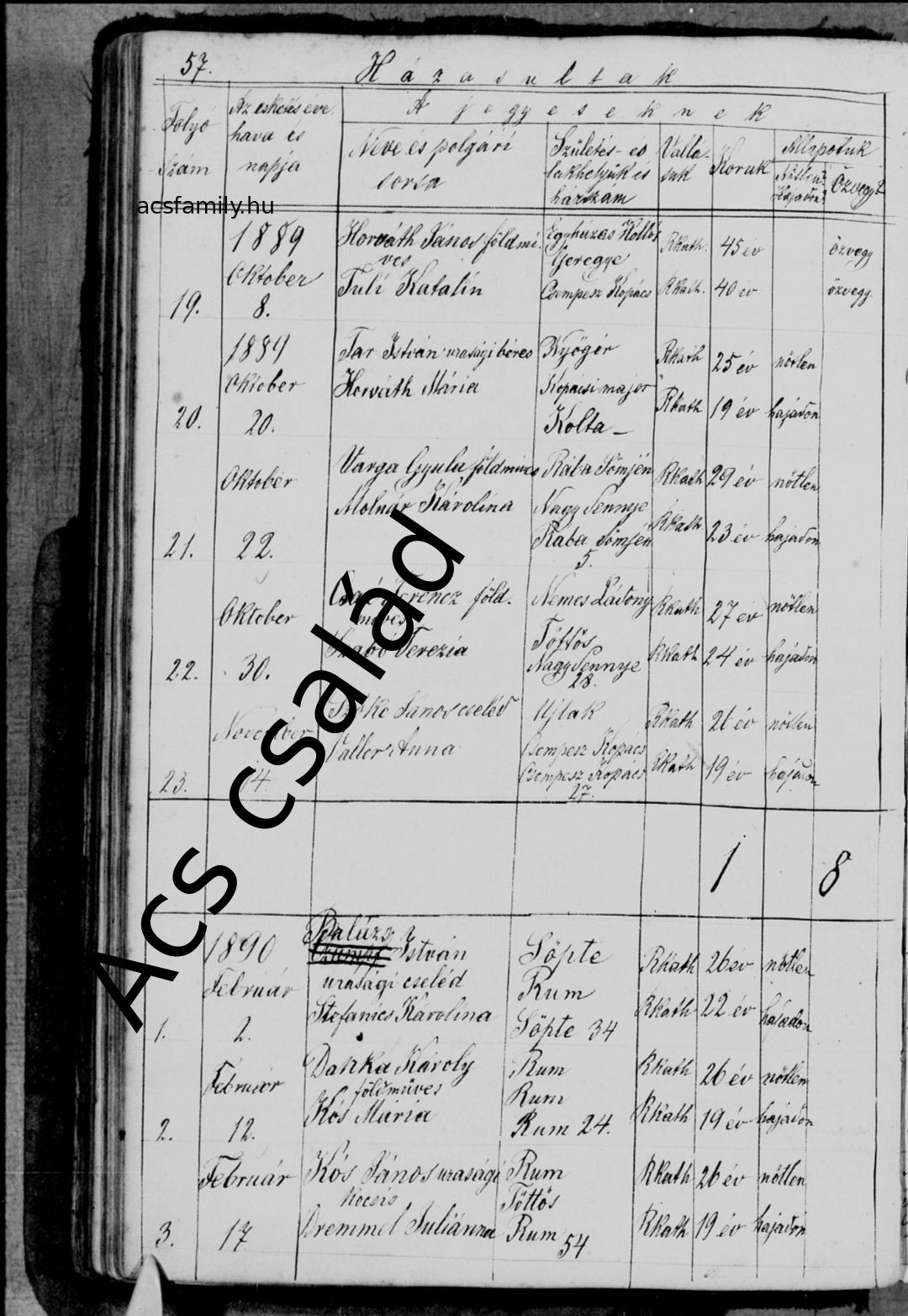 | Lakóhely | Elérhetőségi cím: 1889: Csempeszkopács 27. (Rumi anyakönyv szerint)