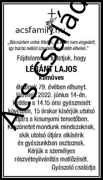 | Szülők házassága | Léránt Lajos — Németh Margit — E család megjelenítése 1943. március 13. |