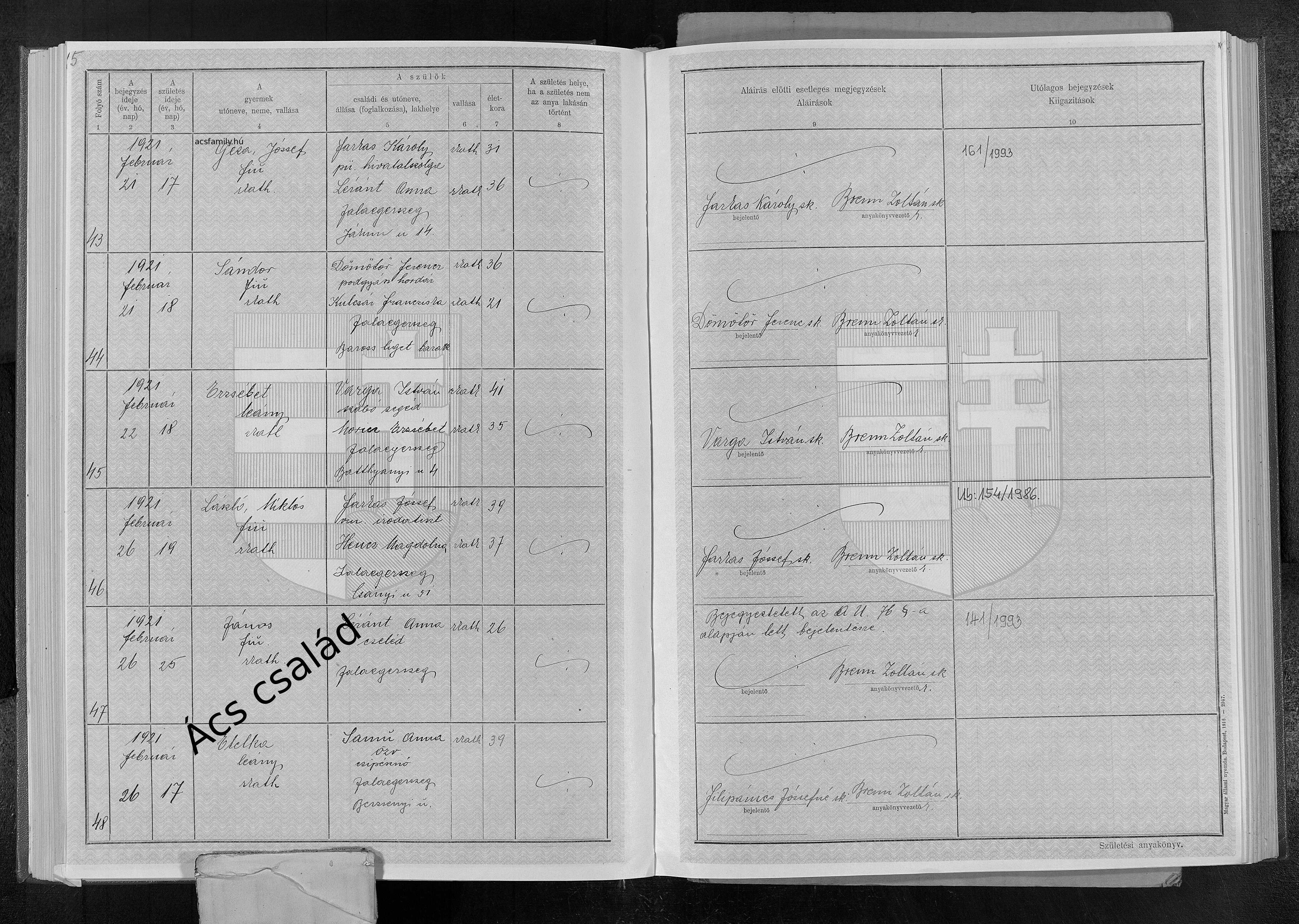 Születés: 1918. augusztus 28. 23 — Szombathely Gyár u. 2. Elhalálozás: 1918. szeptember 28. — Kisunyom |
