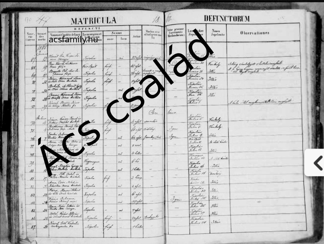 | Anyai nagyanya halála | Tóth Borbála (Barbara) 1856. december 29. (Életkor 4 év) |