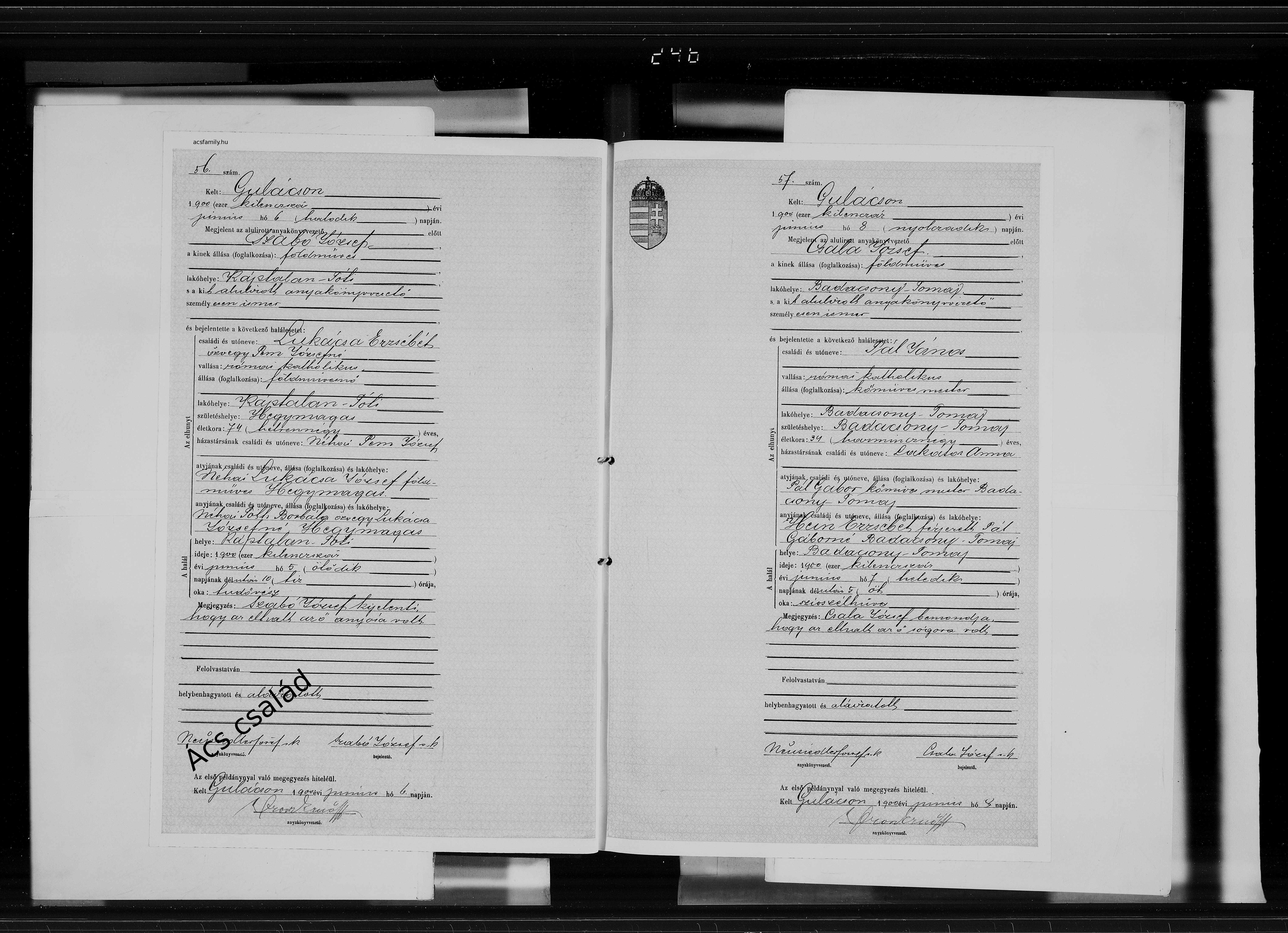 | Fiúgyermek születése #1 | Pem Gyula 1879. december 11. (Életkor 27 év) |
