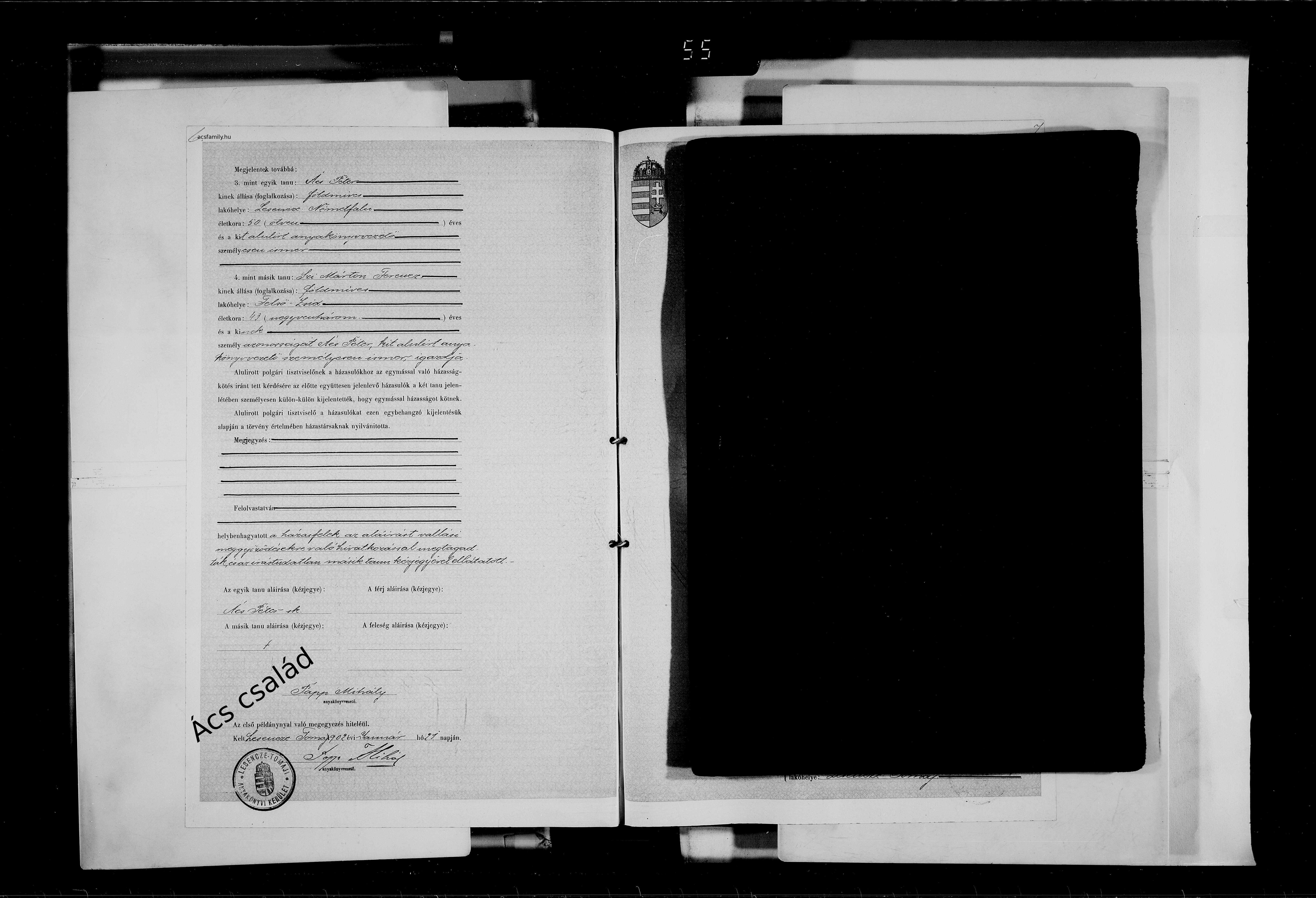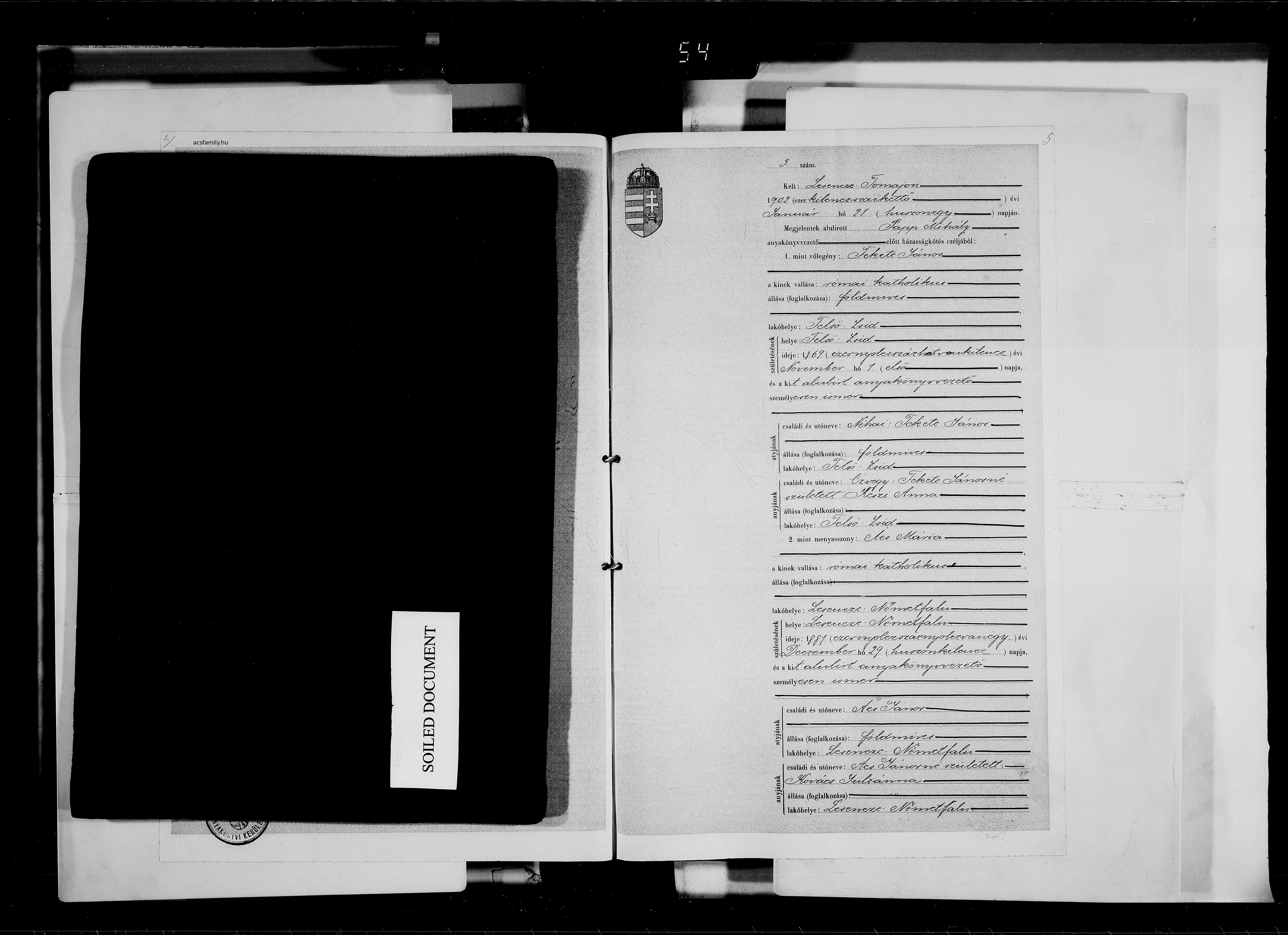 Házasság: 1902. január 21. — Lesencetomaj, Zala |