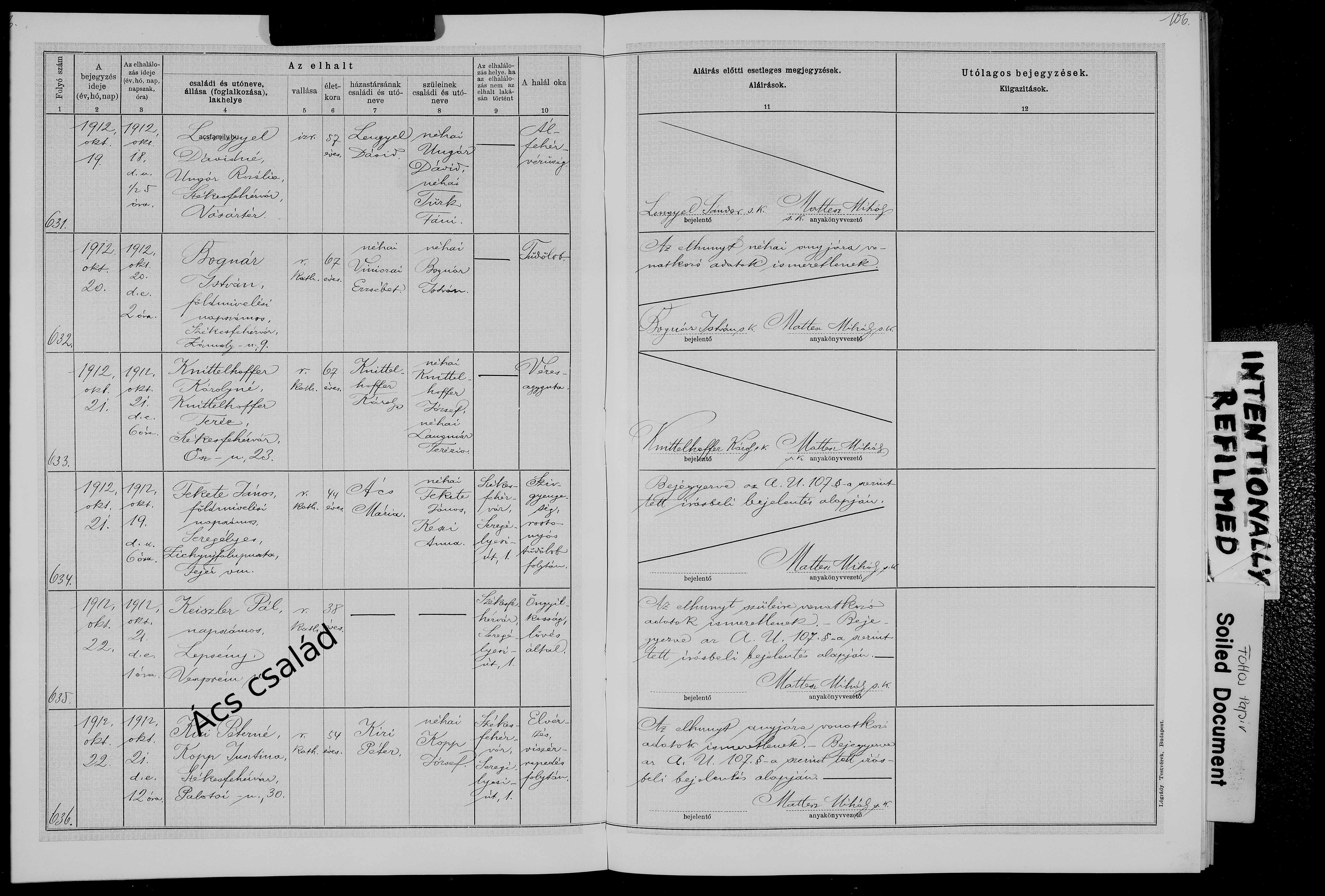 Születés: 1869. november 01. 41 — Felső-Zsid Elhalálozás: 1912. október 19. — Székesfehérvár, Fejér |