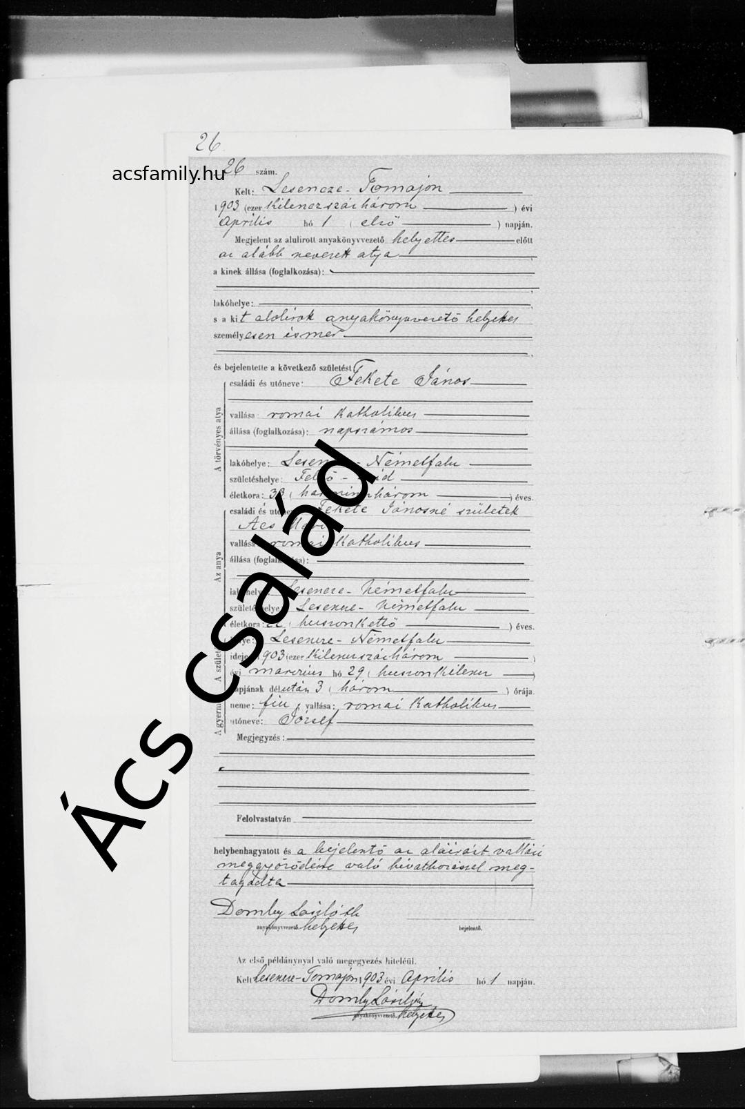 | Fiúgyermek születése #1 | Fekete József 1903. március 29. (Életkor 21 év) |