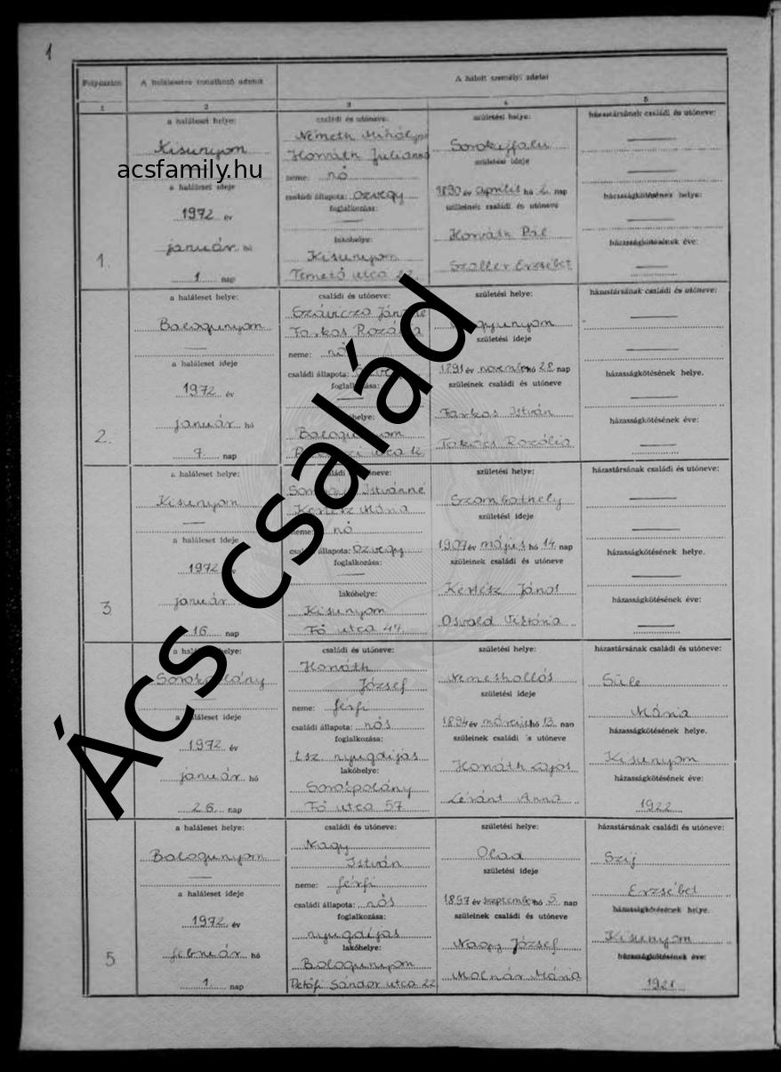Születés: 1881. november 05. 34 35 — Alsó Telekes (Gerse része) Elhalálozás: 1938. november 02. — Kisunyom |