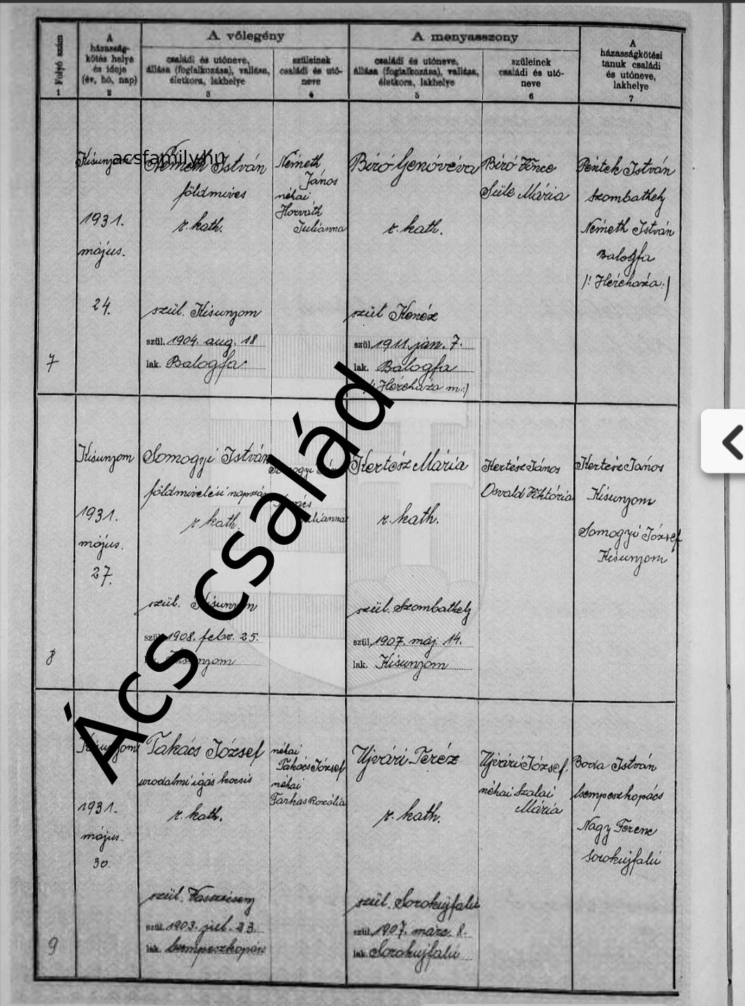 | Házasság | Somogyi István — E család megjelenítése 1931. május 27. (Életkor 24 év) |