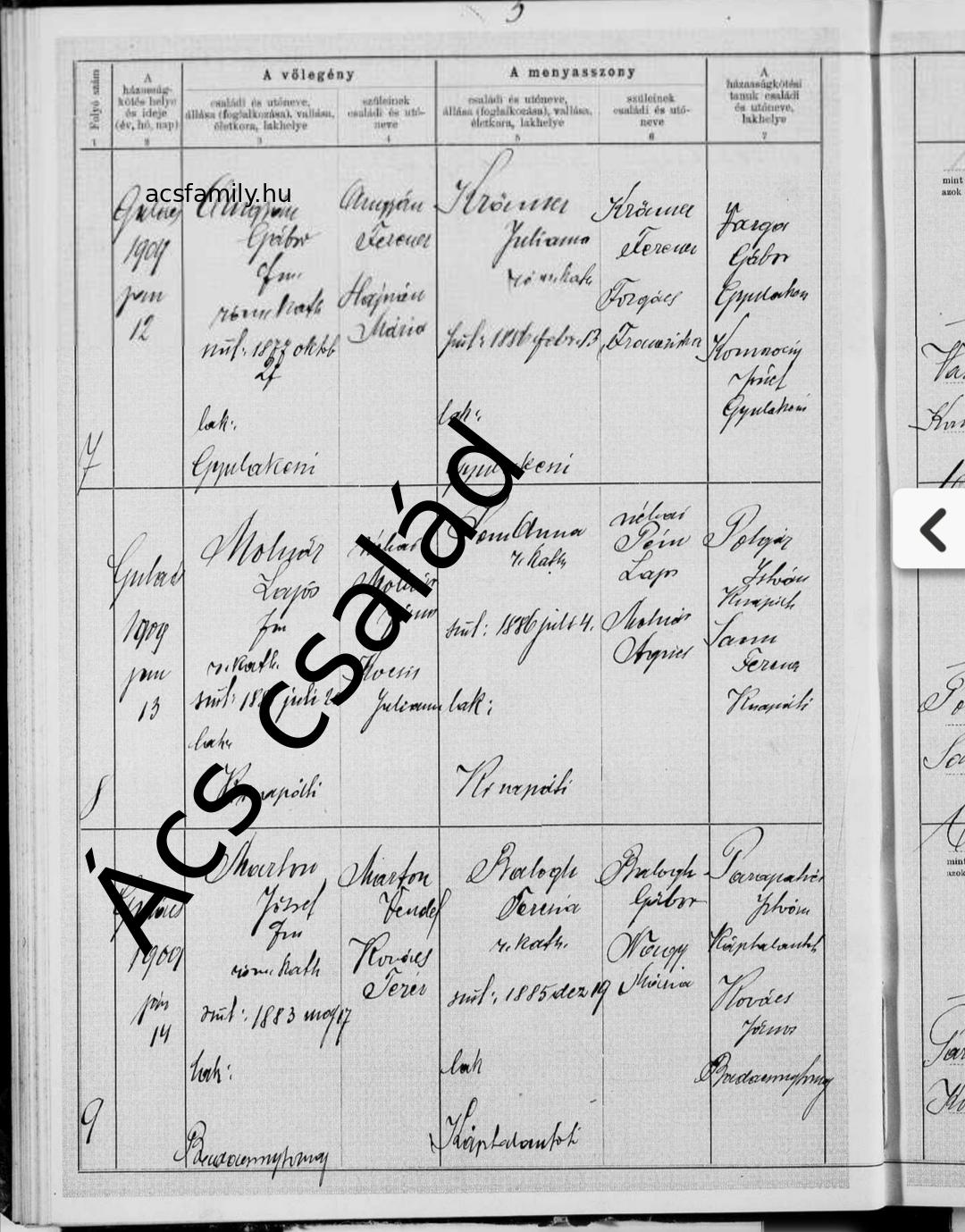Házasság: 1909. január 13. — Nemesgulács, Zala |