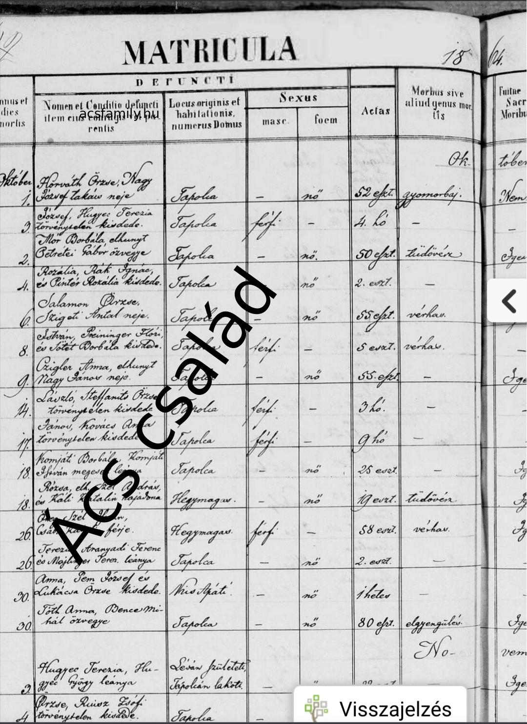 | Pem Anna | 1864. október 20. | 161 | Kisapáti, Zala | 0 | 1864. október 30. | 161 | 0 | Kisapáti, Zala | 2023. április 10. - 18:16:01 | F | YES | YES | ||||